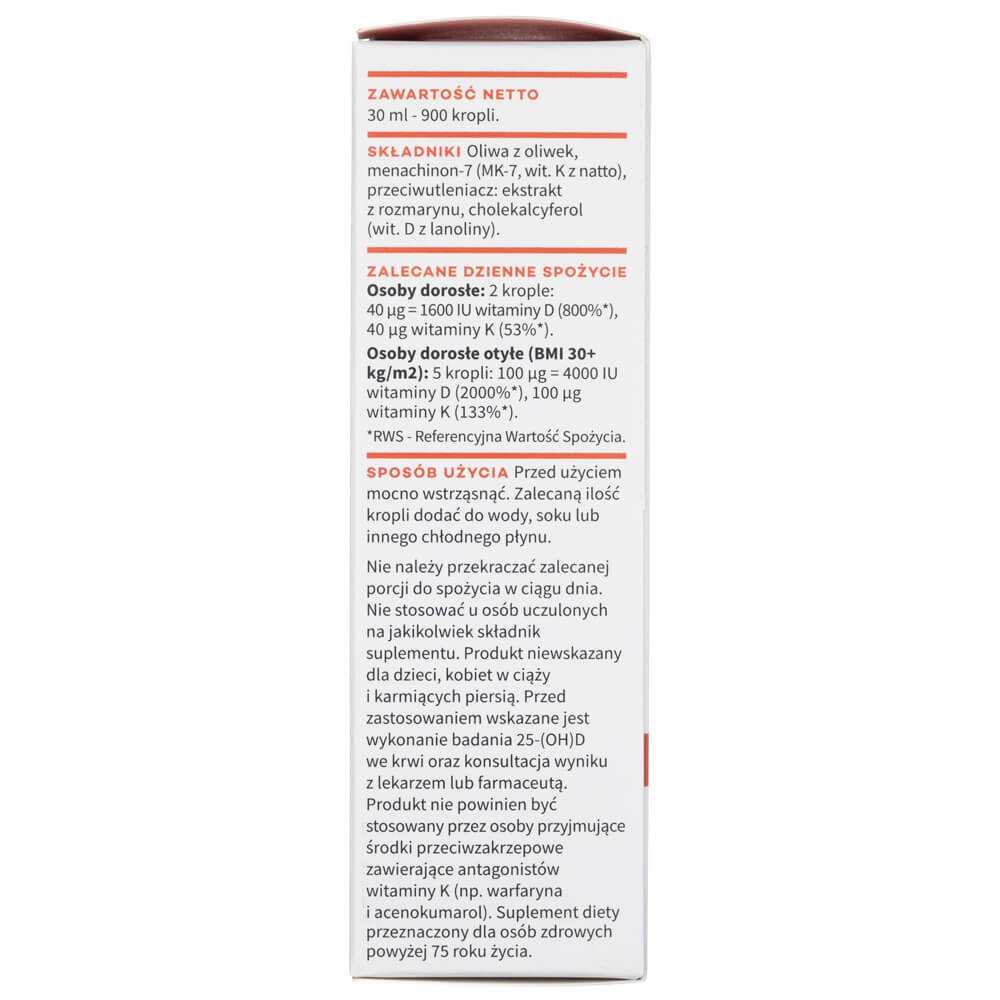 Ulei de măsline, menachinonă (MK-7, vitamina K2 din natto), antioxidant: extract de rozmarin, colecalciferol (vitamina D3 din lanolină).