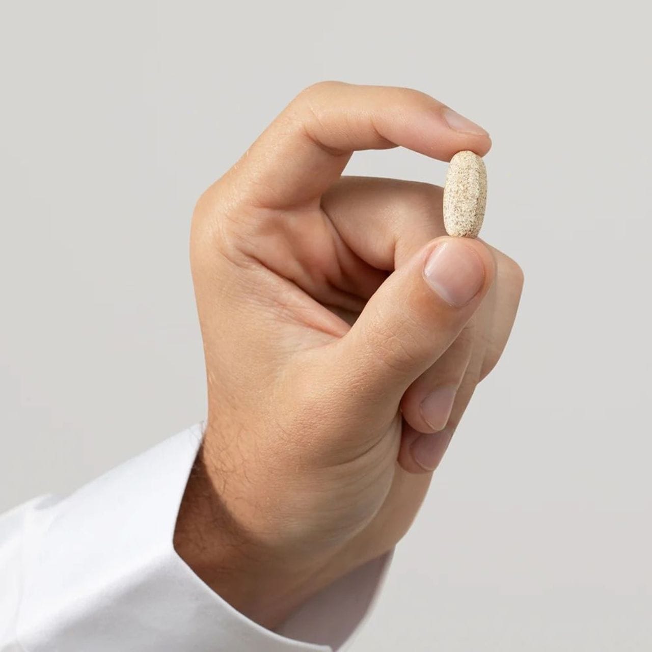Niacină (sub formă de niacinamidă), Vitamina B6 (piridoxină HCl), Acid folic, Biotină, Acid pantotenic (d-pantotenat de calciu), Iod (din extract de talus de alge marine (standardizat la 1%)), Zinc (din gluconat de zinc), Cupru (din gluconat de cupru), Extract de palmier pitic (fruct), Extract de urzică (rădăcină), Extract de ginkgo (frunze) (standardizat la 24% glicozide,6% terpene), Steroli vegetali, Extract de ghimbir (rădăcină și rizom), Taurină, Extract de ginseng american (rădăcină) (standardizat la 5% ginsenozide), fosfat dicalcic dihidrat, celuloză microcristalină, acid stearic vegetal, croscarmeloză sodică, hipromeloză, stearat de magneziu vegetal, dioxid de siliciu, Gumă de acacia, Acoperire cu vanilie în apă (Hidroxipropilmetilceluloză, Gumă de acacia, Glicerină, Ulei de floarea-soarelui, Aromă naturală, Maltodextrină, Triacetină).