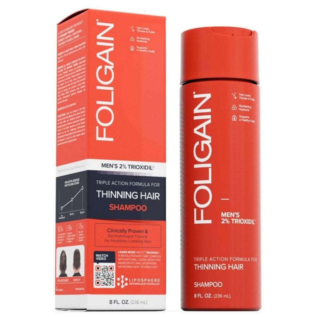 Șamponul FOLIGAIN cu 2% Trioxidil este o formulă testată clinic pentru bărbații cu păr subțire. Conține complexul brevetat Trioxidil , care, conform studiilor, crește volumul părului cu 180% în 4 luni și reduce căderea părului cu 76% . Blochează DHT, curăță scalpul și întărește foliculii de păr. Fără parabeni, sulfați și ftalați !