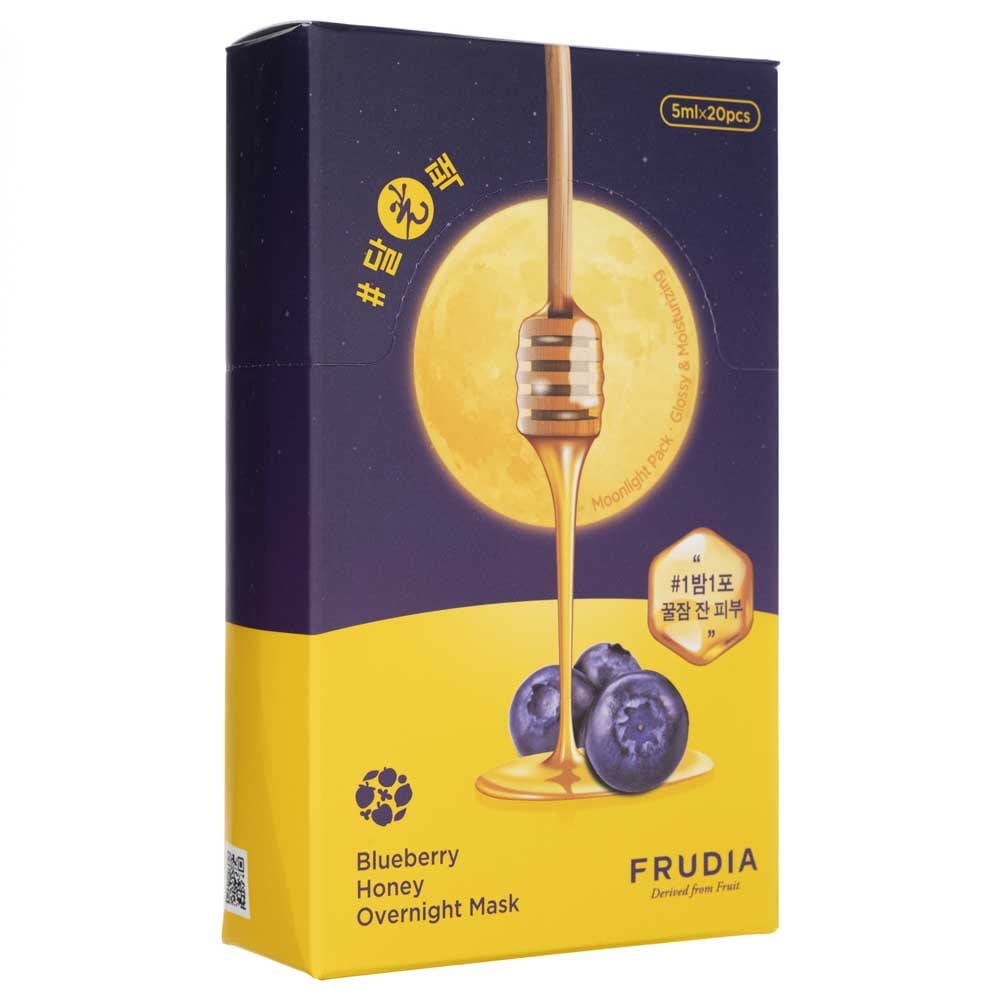 Frudia Blueberry Honey Overnight Mask este o mască hrănitoare, de noapte pe bază de extract hidratant de afine care înmoaie, netezește și calmează pielea ta. În plus, acest produs este îmbogățit cu unt de shea hrănitor și betaină puternic hidratantă pentru a oferi o îngrijire completă. Setul conține 20 de măști .