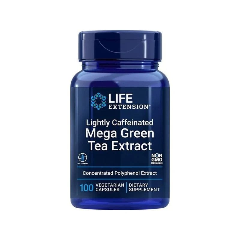 Life Extension Mega Green Tea Extract este un supliment alimentar în capsule, care conține 725 mg de extract de ceai verde standardizat pentru 98% polifenoli per porție zilnică.