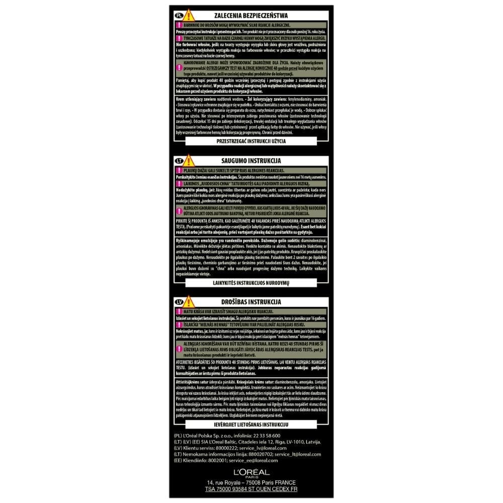 Urmați instrucțiunile de utilizare incluse în ambalaj. Înainte de utilizare, asigurați-vă că efectuați un test de alergie cu 48 de ore înainte de aplicare, chiar dacă ați utilizat anterior produse color.