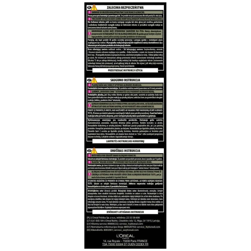 Urmați instrucțiunile de utilizare incluse în ambalaj. Înainte de utilizare, asigurați-vă că efectuați un test de alergie cu 48 de ore înainte de aplicare, chiar dacă ați utilizat anterior produse color.