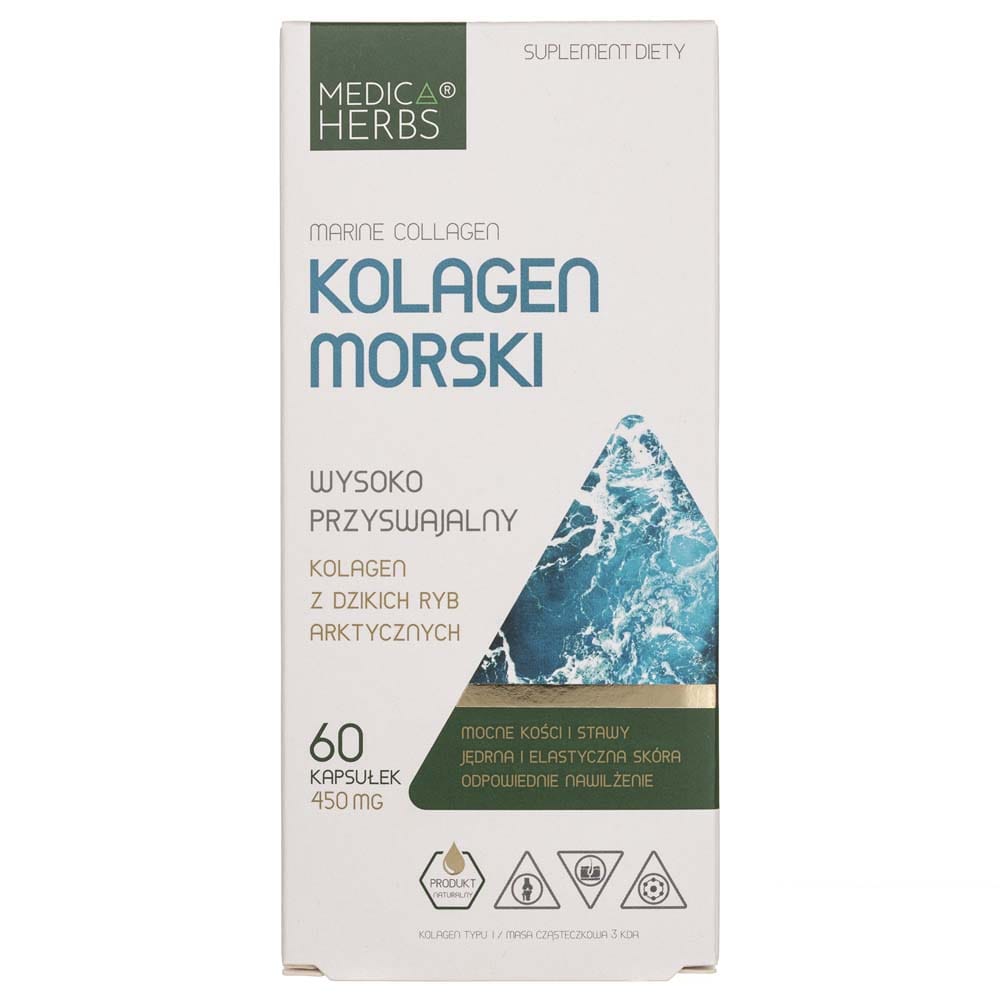 Colagen marin din Medica Herbs, este un supliment alimentar în capsule care conține colagen extras din pielea peștilor marini. Colagenul este o proteină prezentă în mod natural în organismul uman, care este una dintre componentele esențiale ale țesutului conjunctiv. Acesta susține regenerarea naturală a cartilajului articular, susținând astfel buna funcționare a articulațiilor.