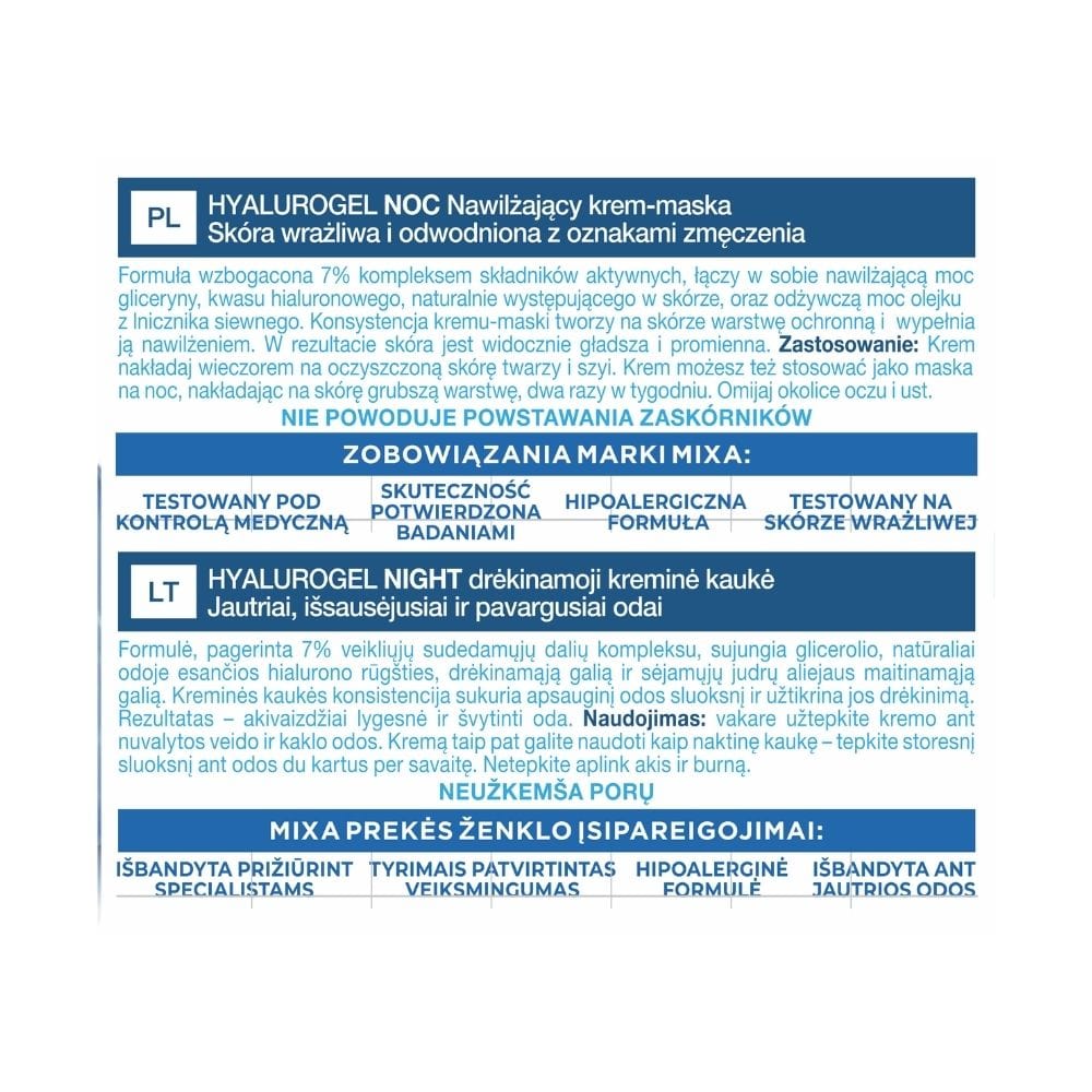 Mască de noapte pentru față Mixa Hyalurogel - 50 ml