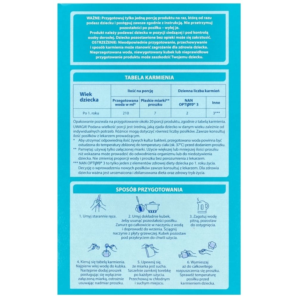 NAN OPTIpro 3 este un produs pe bază de lapte destinat copiilor mici. Îmbogățit cu vitamine și minerale. Nu este un substitut pentru laptele matern, ci un produs creat având în vedere copiii cu vârsta peste 1 an