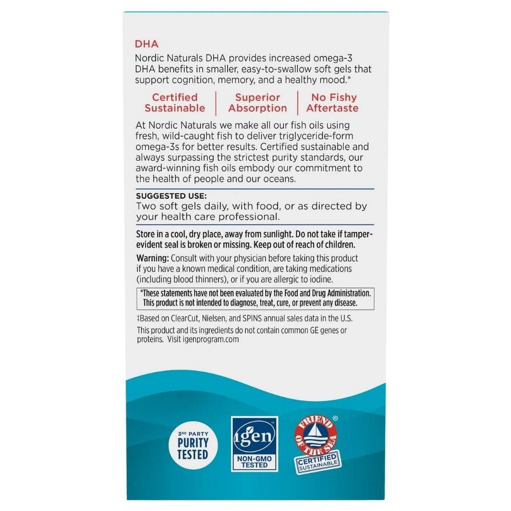Nordic Naturals DHA este un supliment alimentar sub formă de capsule gelatinoase. Formula oferă 830 mg de Omega-3 , inclusiv până la 480 mg de DHA (acid docosahexaenoic).