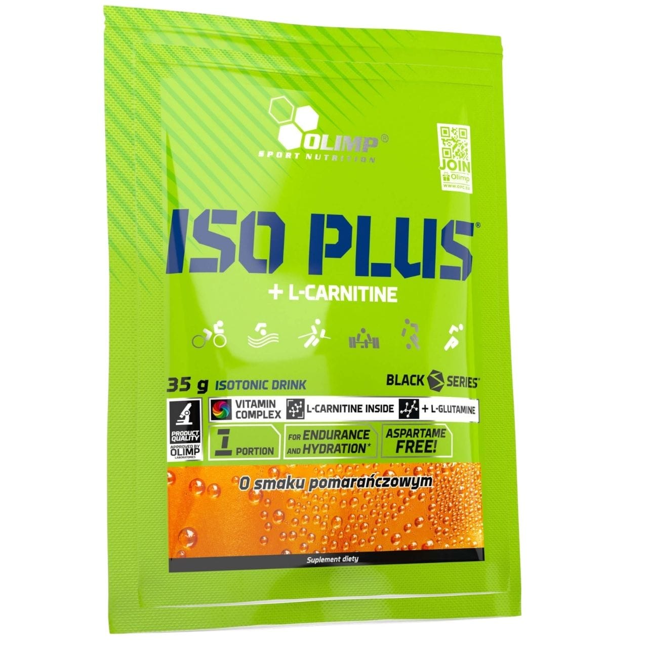 Olimp Iso Plus Isotonic with L-carnitine is a dietary supplement in powder form for preparing a carbohydrate-electrolyte drink. The product is intended for athletes participating in endurance sports. Carbohydrate-electrolyte solutions help maintain endurance during prolonged exercise and increase water absorption during physical activity. Each serving (35 g / 500 ml) provides a complex of 12 vitamins at 40% of the RDA, 100 mg of L-carnitine, 385 mg of L-glutamine and electrolytes: sodium, potassium, calcium and magnesium. Contains sweeteners.