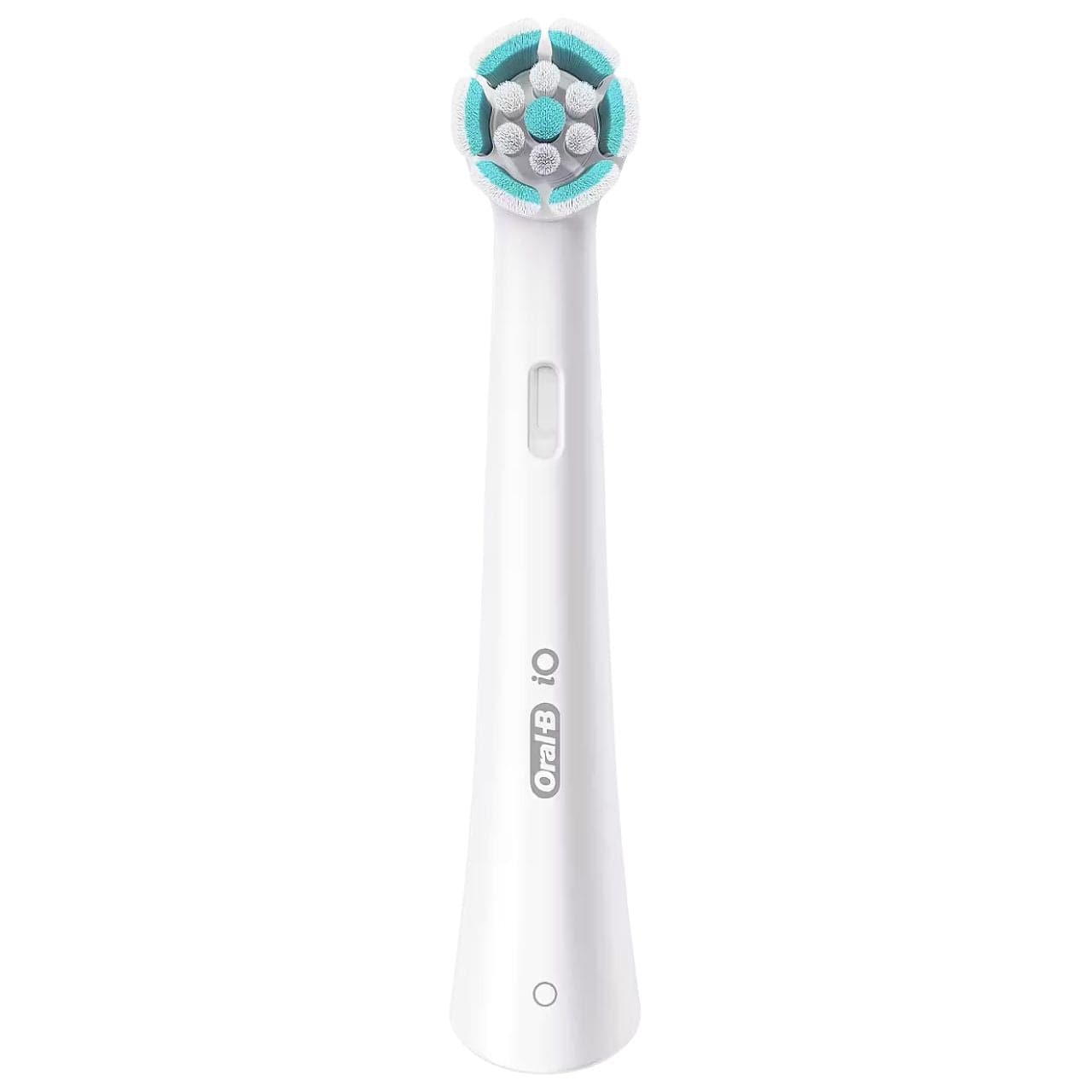 Capetele de periuță Oral-B iO Gentle Caresunt concepute pentru persoanele cu dinți și gingii sensibile . Perii ultra-subțiri ajută la reducerea riscului de iritare, oferind alinare persoanelor cu hipersensibilitate. Capul rotund se adaptează formei fiecărui dinte , ajutând la îndepărtarea completă a plăcii bacteriene fără disconfort.