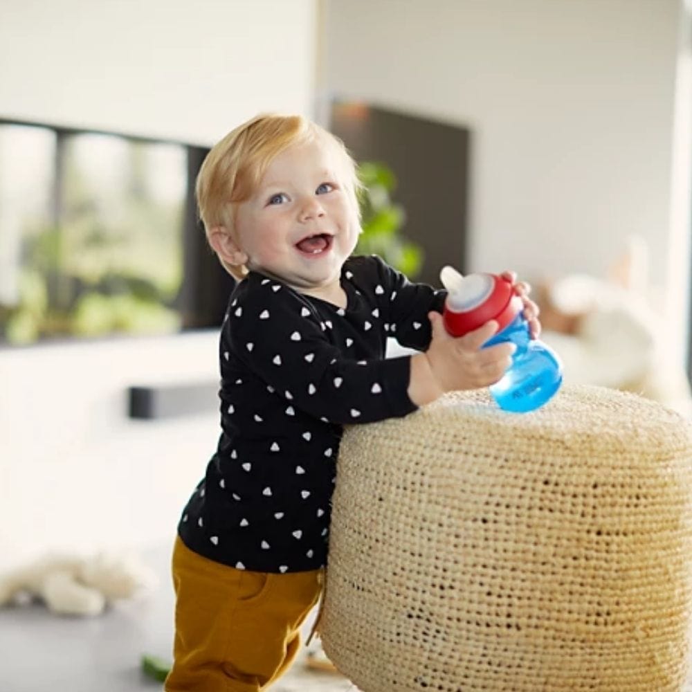 Ceașca cu gura de scurgere Philips Avent My Grippy a fost concepută pentru copiii mici activi care abia încep să bea singuri. Supapa sa unică garantează funcționarea fără scurgeri chiar și în timpul jocurilor intense - lichidul curge doar atunci când copilul dumneavoastră bea efectiv din cană. Această soluție a fost apreciată de 91% dintre mămici*, care au confirmat eficiența sa în prevenirea scurgerilor.