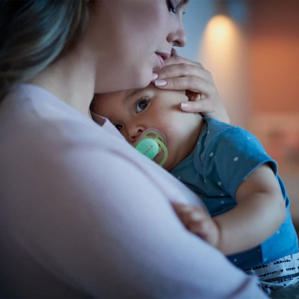 - Alimente nocturne și treziri - butonul luminos facilitează găsirea suzetei.