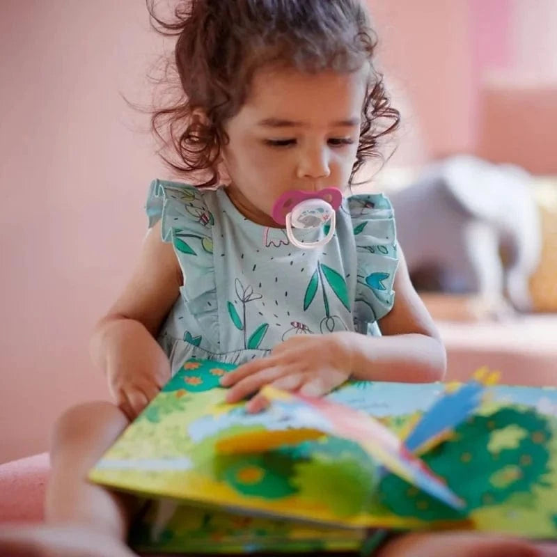 Suzeta satisface nevoia naturală de supt care este puternic prezentă la bebeluși. Potrivită pentru copiii cu vârsta cuprinsă între 6-18 luni, oferă confort și un sentiment de siguranță, susținând în același timp dezvoltarea corectă a gurii. Tetina din silicon ortodontic, simetric și moale este modelată pentru a respecta dezvoltarea naturală a dinților și gingiilor palatului, copilului dumneavoastră.