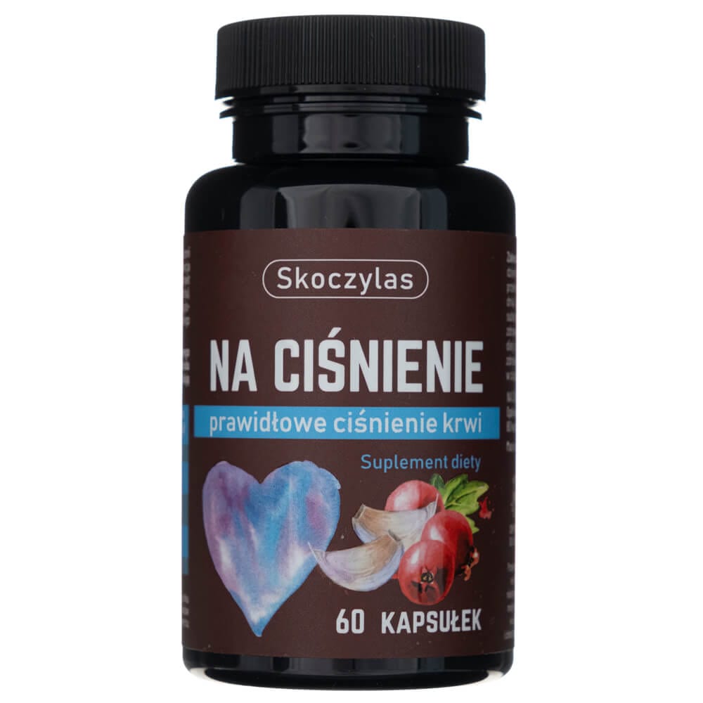 Suplimentul alimentar Na Ciśnienie marca Skoczylas conține potasiu, care ajută la menținerea tensiunii arteriale normale. Păducel, care susține funcția inimii și a sistemului cardiovascular. Chokeberry și usturoi, care au proprietăți antioxidante.