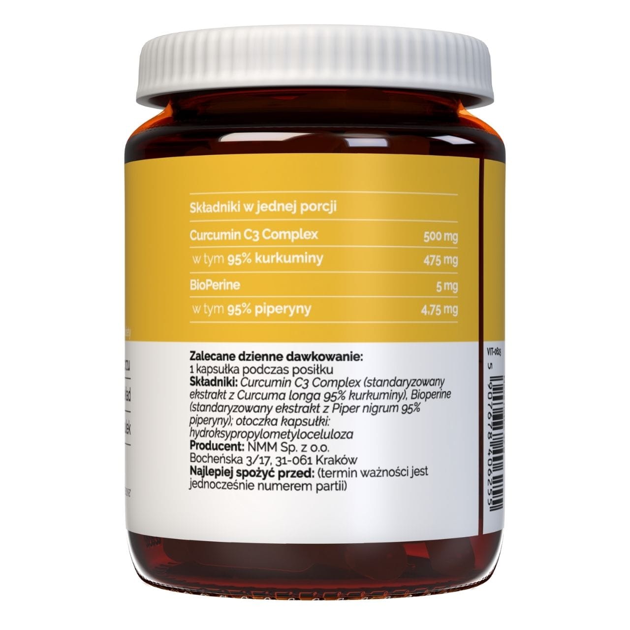 Curcumin + Piperine by Vitaler's is a dietary supplement in capsule form containing turmeric and pepper extract. Curcumin C3 Complex is a patented complex containing standardised turmeric, including 95% curcumin. The preparation also contains Bioperine, an extract from black pepper fruit, including 95% piperine.