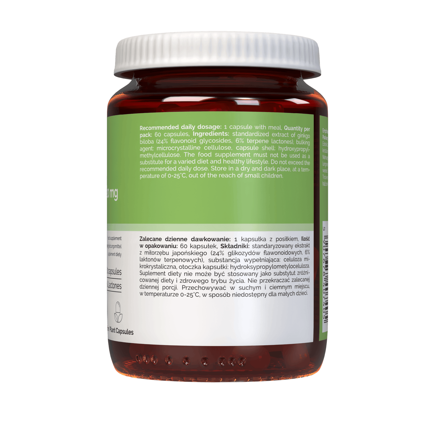 Extract standardizat de ginkgo biloba (24% glicozide flavonoide,6% lactone terpenice), agent de încărcare: celuloză microcristalină, înveliș capsulă (hidroxipropilmetilceluloză).