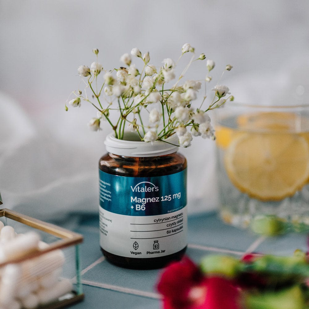 Vitaler's Magneziu 125 mg + B6 este un supliment alimentar care respectă recomandările unei diete vegane și vegetariene. Datorită vitaminei B6 conținute în produsul, absorbția magneziului din tractul gastro-intestinal este crescută cu 20-40%.