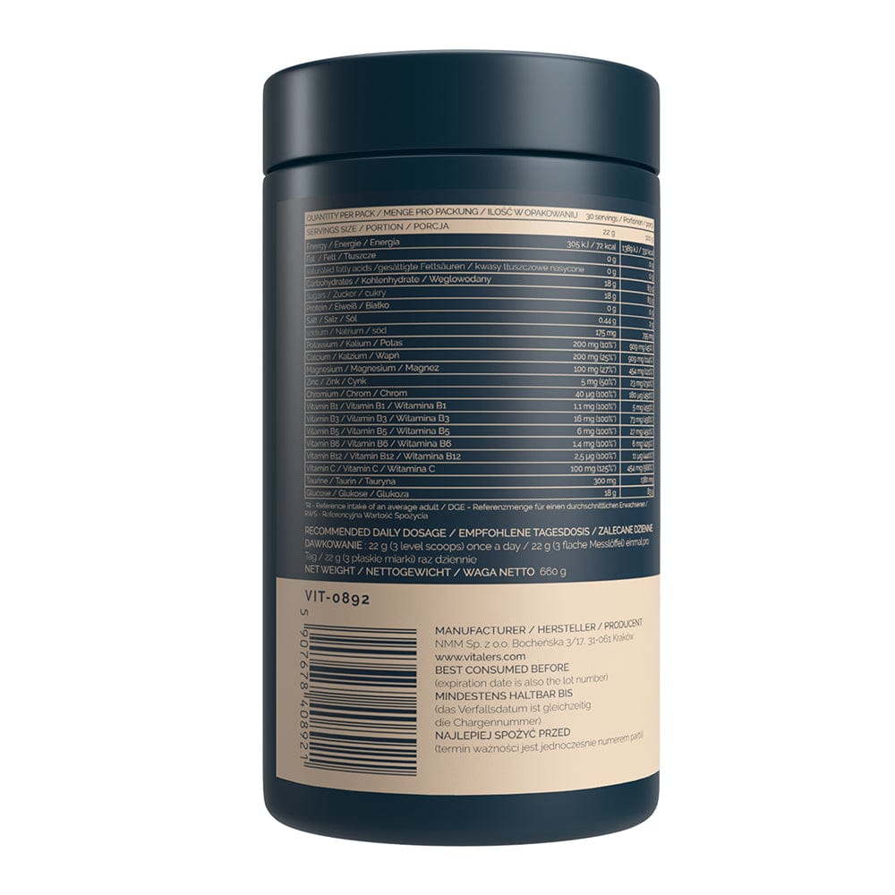 Vitaler's Sport Isotonic este un supliment alimentar sub formă de pulbere. Sursă de electroliți esențiali și complex de vitamine în forme cu biodisponibilitate ridicată. Conține zahăr și îndulcitori.