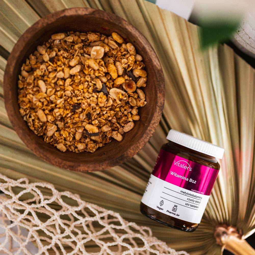 Metilcobalamina este o formă de vitamina B12 care se distinge prin rata de absorbție mai rapidă și rămâne în organism mai mult timp (spre deosebire de cianocobalamină). Metilcobalamina este forma biologic activă a vitaminei B12, motiv pentru care este recomandată și persoanelor care se luptă cu absorbția deficitară a formelor nemethyl ale vitaminei (a care se găsesc cel mai adesea în suplimentele alimentare). Vitamina B12 ajută la producerea de globule roșii și afectează sistemul nervos, care facilitează memoria și îmbunătățește concentrarea. Principala sursă de vitamina B12 sunt produsele de origine animală, motiv pentru care vitamina B12 este recomandată în special persoanelor cu diete vegane și vegetariene. Vitaler's Vitamina B12 este lipsită de aditivi inactivi și complet inutili.