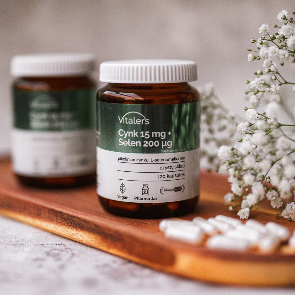 Vitaler's Zinc + Seleniu este un supliment alimentar sub formă de capsule care conține zinc sub formă de picolinat de zinc și seleniu sub formă de L-selenometionină.