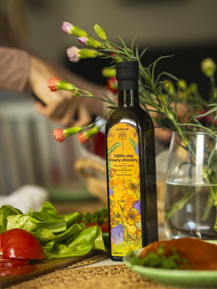 Ulei de semințe de in auriu Wellbear presat la rece - 500 ml