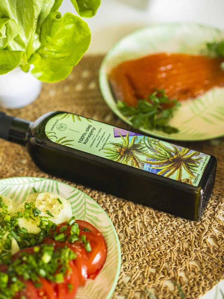 Numai uleiul de cânepă de cea mai bună calitate păstrează toate proprietățile valoroase ale semințelor de cânepă benefice pentru sănătate. Uleiul nostru de cânepă este presat la rece într-o moară de ulei poloneză din cele mai atent selectate semințe ale plantei. Produsul nu este supus niciunui proces de filtrare, purificare sau rafinare, astfel încât acesta conține toate componentele uleiului de cânepă în cea mai mare concentrație. De asemenea, nu îi adăugăm niciun conservant, deci nu uitați să păstrați uleiul în frigider după deschidere. Veți recunoaște uleiul de cânepă de înaltă calitate după culoarea sa caracteristică verde ca iarba și aroma profundă, ușor de nuci.